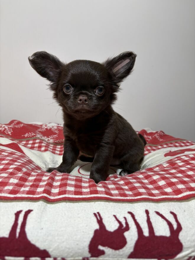 Uroczy piesek Chihuahua długowłosy – czekoladowy Mao – gotowy do nowego domkuW naszej kameralnej, domowej hodowli dostępny jest wyjątkowy piesek rasy Chihuahua długowłosa w pięknym, czekoladowym umaszczeniu. Hodowla prowadzona jest z pasji i miłości do psów – nie jest to produkcja masowa, a każdy maluch otrzymuje maksimum uwagi i troski.
